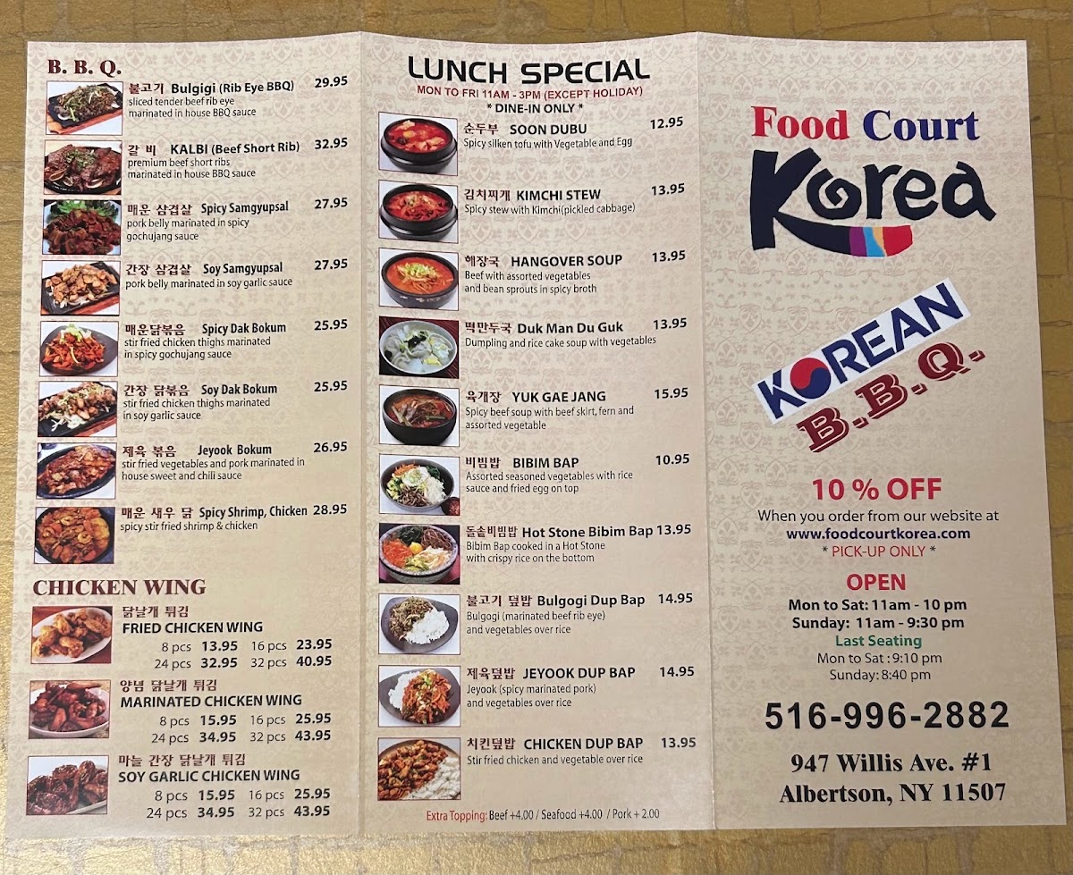Food Court Korea Menu